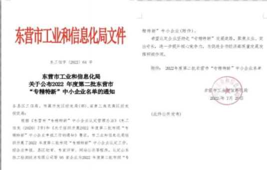 喜報--我公司成功上榜東營市"專精特新"中小企業(yè)名單